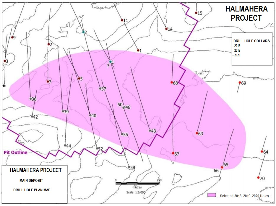 - Estimate for 2020 - 2020 mineral resources are reported in relation to a conceptual pit shell and a cut-off grade of 0.06 % DTR Ni inside a resource shell.