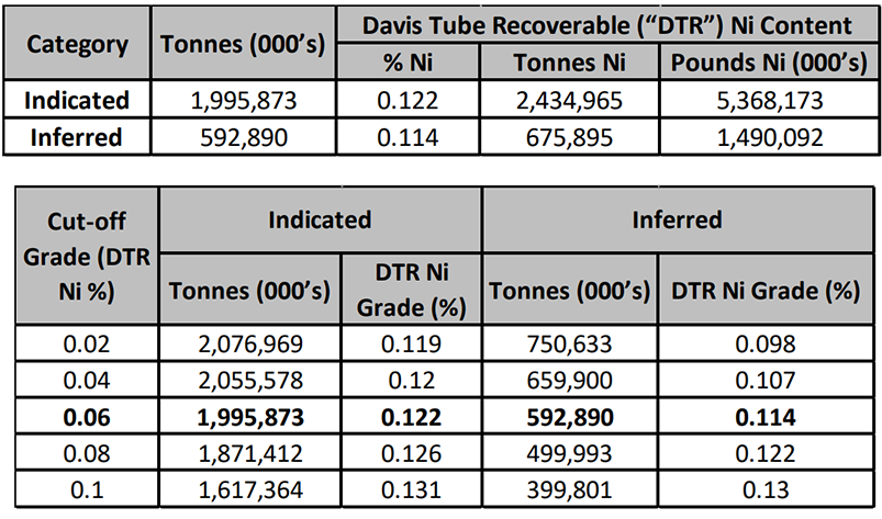 * Davis Tube Recoverable Nickel”; 0.06% cut-off