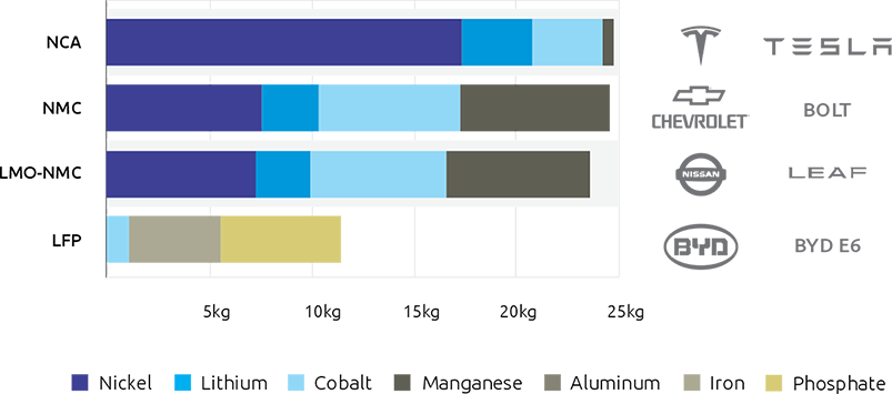 Along with this growing market share, battery technology is improving, which is another reason why the use of nickel-containing Li-ion batteries is expected to increase. Nickel Cobalt Aluminium (NCA) and Nickel Manganese Cobalt (NMC), two of the most widely used types of batteries, contain 80 % and 33 % nickel, respectively; newer NMC formulations are also reaching 80 % nickel. Nickel is now used in the majority of Li-ion batteries.